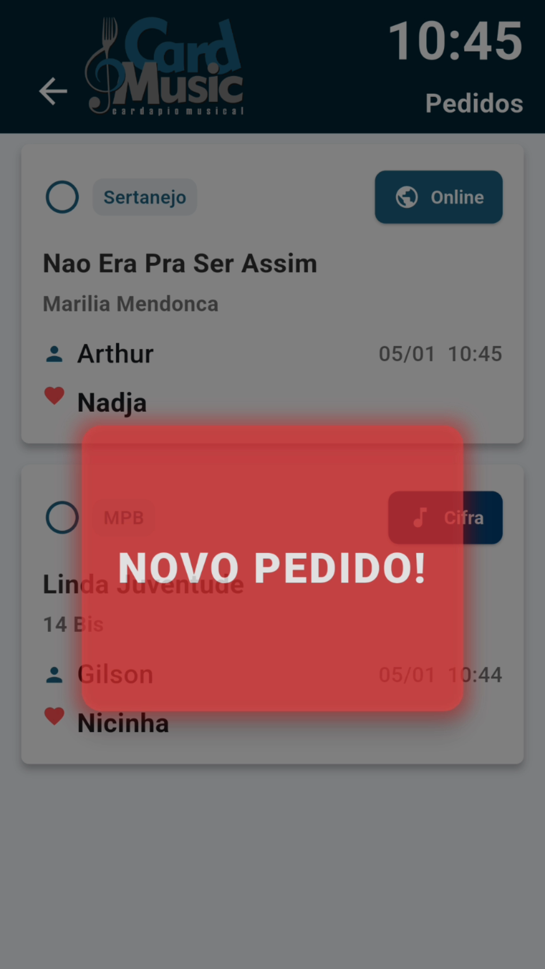 Gerencie seu repertório, receba pedidos na hora.